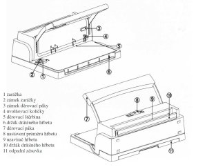 Elegantní kancelářský vázací stroj usnadní výrobu publikací s kovovými hřbety. Je vybavený pákou pro děrování a roztažení kroužku, měřidlem velikosti hřbetu a pěti vyřaditelnými noži. Najednou prosekne až 34 otvorů do maximálního počtu 15 listů. Bez problémů sváže až 120 listů dokumentu.
