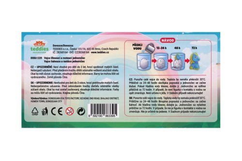 Objevte kouzlo s líhnoucím a rostoucím jednorožcem ukrytým ve vejci! Tato magická hračka potěší každé dítě, které miluje překvapení, pohádky a fantazii. Stačí vejce ponořit do vody a během několika hodin začne pukat – z jeho nitra se vylíhne roztomilý jednorožec. Ale zábava tím nekončí! Jednorožec bude dál růst každým dnem, dokud nedosáhne své plné velikosti. Hračka podporuje dětskou zvědavost, trpělivost a radost z objevování. Díky jednoduchému použití a poutavému výsledku se stává ideálním dárkem pro malé i větší děti. Vejce s rostoucím jednorožcem je bezpečné, hravé a připravené na svou kouzelnou proměnu – stačí jen voda a trochu trpělivosti. Velikost vajíčka: 6 cm Rozměr balení: 8 × 11 cm Vhodné pro děti od 3 let