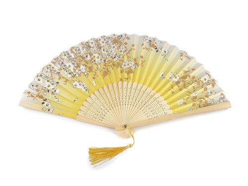 Vějíř textilní s metalickými detaily - žlutá světlá stříbrná
