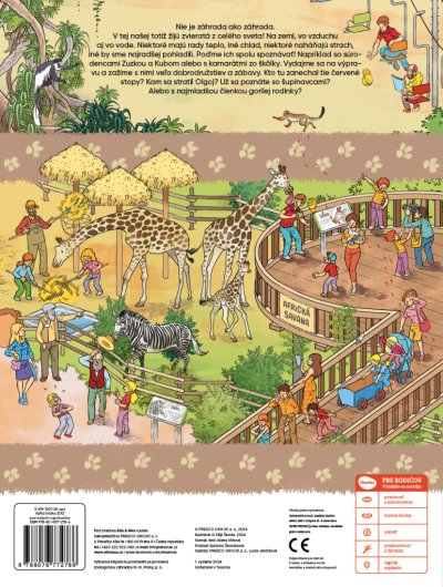 Prozkoumáte-li tuhle speciální knížku plnou krásných, detailně propracovaných celostránkových ilustrací důkladněji, zjistíte, že ukrývá spousty příběhů. Ty se odehrávají nejen na jednotlivých stranách, ale i v průběhu celé knihy. A mnohé další si děti jistě vymyslí samy! Díky kreativní práci s knížkou jsou vedeny k přemýšlení o tom, co „čtou“, rozvíjejí svou slovní zásobu, předčtenářské dovednosti a rovněž si tříbí paměť, pozornost a logické myšlení. Velká obrázková knížka ZOO Praha pro malé vypravěče vznikla ve spolupráci s pražskou zoo a malí návštěvníci v ní poznají jednotlivé expozice, místní zvířecí obyvatele i personál, který o ně pečuje.