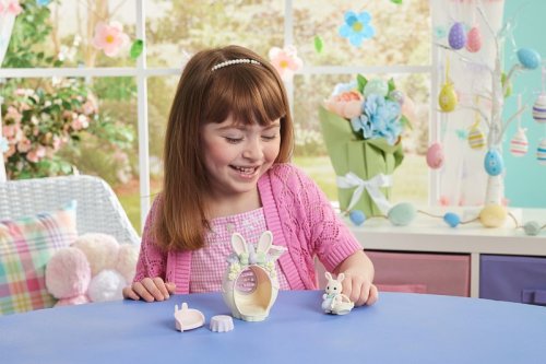 Sada Sylvanian Families – Velikonoční vajíčko s králíčkem obsahuje domek s velkýma králičíma ušima na střeše, ozdobený jarními květinami. V domečku se nachází pohovka a stoleček. Sada obsahuje roztomilou figurku králičího miminka Marguerite. Malý králíček je oblečený do krásného jarního oblečení a drží košíček se dvěma vajíčky. Hračky Sylvanian Families rozvíjejí představivost a povzbuzují děti ke hře na role. Hra s figurkami rozvíjí kreativitu a učí emocím vytvářením a vyprávěním příběhů založených na každodenních zážitcích a pozorování světa. Vyznačují se nejvyšší kvalitou a výjimečným důrazem na detaily. Figurky Sylvanian Families jsou pokryté měkkým semišem a mají pohyblivé končetiny a hlavu. Baleno v krabičce. Rozměry balení: 15 x 13 x 8 cm. Věk: 3+