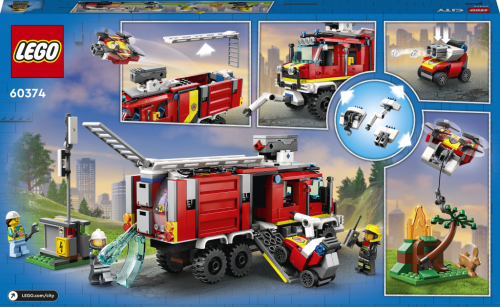 Dodejte hře na hasiče šťávu s velitelským vozem hasičů od LEGO® City (60374). Propracovaný hasičský vůz se pyšní odnímatelným řídicím centrem, hasičským dronem a pozemním dronem. Děti mohou z vozu a dronu střílet dílky vody a uhasit tak požár. Doplňky, které znázorňují lesní a městské prostředí, a 3 minifigurky pak zajistí dlouhé hodiny akční zábavy!