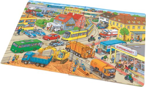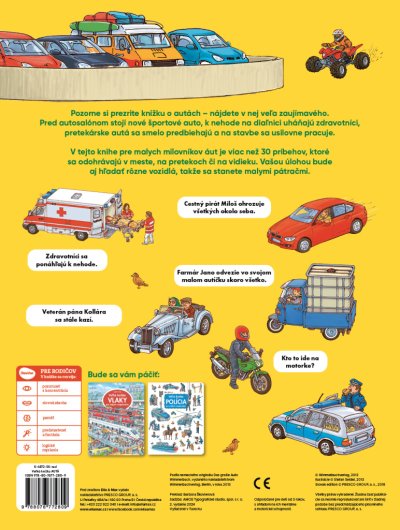 Tato velkoformátová kniha přináší panoramatické obrazové vhledy do prostředí silnic, staveb, ale i jiných. Bohatě propracované názorné ilustrace jsou pro děti velkým lákadlem, bezednou studnicí inspirace a zároveň obrovskou výzvou – množství detailů je přitahuje, podněcuje jejich představivost a fantazii. Malý vypravěč v interakci s dospělým nejen popisuje, co vidí na obrázcích, ale také v nich hledá, a hlavně kreativně a hravě rozplétá a opět spojuje nekonečné nitky možných příběhů. Knihy tak velmi účinně napomáhají budování slovní zásoby, komunikačních schopností i logického myšlení. Dítě tříbí svůj postřeh, zrakovou a sluchovou paměť, a činí tak první krůčky na své cestě k rozvoji aktivního čtenářství.
