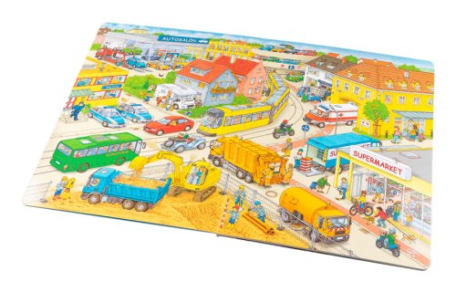 Tato velkoformátová kniha přináší panoramatické obrazové vhledy do prostředí silnic, staveb, ale i jiných. Bohatě propracované názorné ilustrace jsou pro děti velkým lákadlem, bezednou studnicí inspirace a zároveň obrovskou výzvou – množství detailů je přitahuje, podněcuje jejich představivost a fantazii. Malý vypravěč v interakci s dospělým nejen popisuje, co vidí na obrázcích, ale také v nich hledá, a hlavně kreativně a hravě rozplétá a opět spojuje nekonečné nitky možných příběhů. Knihy tak velmi účinně napomáhají budování slovní zásoby, komunikačních schopností i logického myšlení. Dítě tříbí svůj postřeh, zrakovou a sluchovou paměť, a činí tak první krůčky na své cestě k rozvoji aktivního čtenářství.