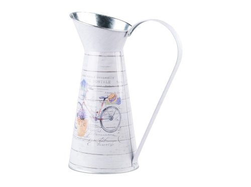 Originální plechová konev s motivem kola je skvělou dekorací pro vaši zahradu nebo květinové aranžmá. Tento jedinečný design přitahuje pozornost a dodá vašemu prostoru veselý a hravý vzhled. Její rozměry jsou 220x140x300mm.