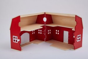 Limitovaná retro edice – Velká stodola Schleich® je vyrobena ze dřeva a lze ji prakticky rozkládat a skládat ze strany. Díky tomu je prostorná stáj se senem dobře přístupná a zábava může začít. Ve střeše je zabudované praktické držadlo pro přenášení farmy. Kdo svůj pohled zaměří na pole, nemusí farmu dlouho hledat. Zářivě červená farma se svými velkými vraty do stodoly a vysokou střechou okamžitě upoutá pozornost. Stěny dřevěné budovy jsou natřeny červeně, okenní rámy a příčky dveří jsou natřeny bíle. Vypadá to tak lákavě, že se tam budete chtít hned podívat. Pohled dovnitř odhaluje: Na půdě je dostatek místa na seno a slámu. Ve stáji jsou uloženy bílé dílky plotu. Stačí je jen postavit tak, aby ohraničily svěží pastviny. Tak, vše je připraveno na stěhování! Kdy dorazí zvířata? Rozměry stodoly: 30 x 35 x 23 cm. Rozměry balení: 31 x 25,5 x 39,5 cm. Věk: 3+