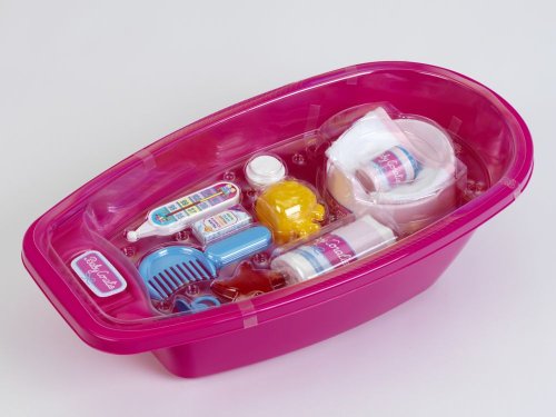 Velká vanička pro panenky s příslušenstvím 12 kusů, které potřebuje maminka k péči o své miminko. Pro panenku o velikosti max 50 cm. Vhodné pro děti od 3 let.