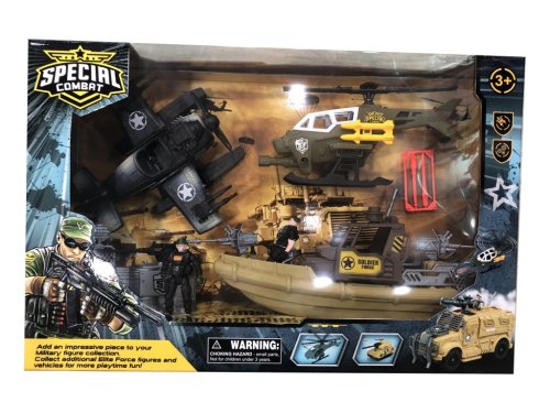 ato velká vojenská sada obsahuje loď, helikoptéru a dvouplošník, což umožňuje dětem vytvářet vzrušující vojenské scénáře na zemi, moři i ve vzduchu! Sada zahrnuje figurky vojáků a spoustu doplňků, které umožní realistické a kreativní hraní. Děti mohou organizovat akční mise, záchranářské operace nebo napínavé bitvy. Tento set podporuje rozvoj představivosti, taktiky a koordinace, a je ideální pro všechny malé fanoušky vojenských her a dobrodružství!