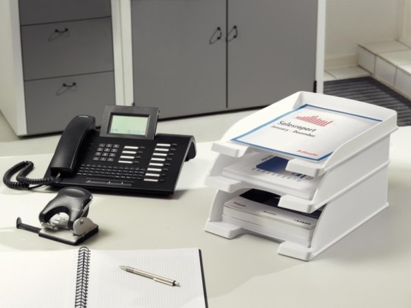 Kvalitní plastová zásuvka se zvýšenou kapacitou a plným dnem pro dokumenty formátu A4; kapacita odkládání 10,0 cm Výřez pro snadný přístup k uloženým dokumentům Zásuvku možno stohovat kolmo nebo předsazeně …