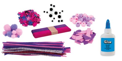 Buď kreativní a vytvoř si květy z papíru, domeček z nanukových paliček, zvířátka a další zábavné postavičky. Balení obsahuje pracovní papír, paličky na nanuky, pěnové figurky, hvězdy, bambule, korálky, očka, lepidlo, třpytivé lepidlo a třpytivé paličky. Dodávané v přenosné krabici s množstvím nápadů.