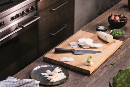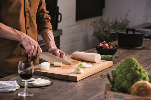 Velký univerzální nůž je ideální pro krájení velkých kusů potravin. Čepel nože je ze silné nerezové ocelové planžety. Ostří je zhotovené revoluční technologií LZR-EDGE. Ta umožňuje, aby nůž zůstal ostrý 4krát déle než standardní nože. Držadlo nože je ergonomicky tvarované s jedinečným 3D vzorem, který zajišťuje perfektní držení. Výška: 420 mm, délka: 25 mm, šířka: 90 mm, hmotnost: 110 g.