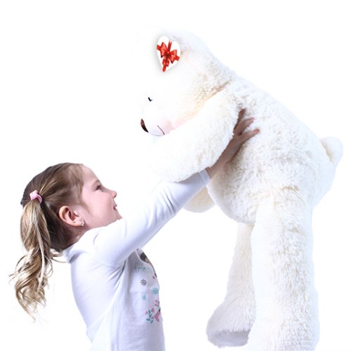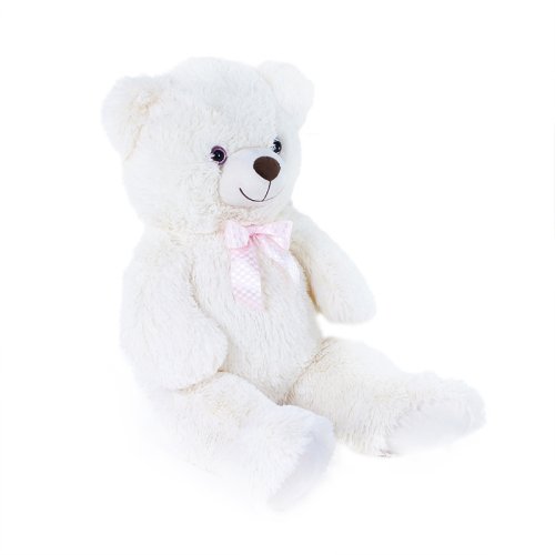 Plyšový medvěd nesmí chybět v žádném dětském pokojíčku! Medvěd ve velikosti 78 cm je vyroben z kvalitní heboučké plyše, má krémově bílou barvu a krk mu zdobí růžová saténová mašle. Tento plyšový kousek je ideálním dárkem pro malé i velké! Součástí je papírová visačka ve tvaru srdíčka, na kterou můžete napsat věnování. Vhodné pro děti od 0 let.