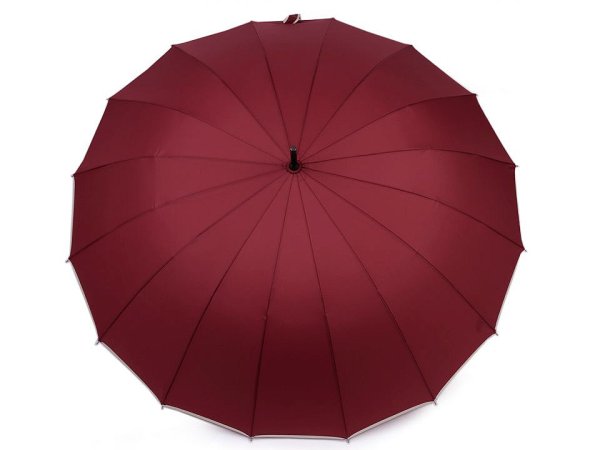 Luxusní jednobarevný deštník s velkým průměrem 110 cm je vhodný jako deštník pro dva (rodinný deštník). Okraje má olemované decentním barevným proužkem. Má klasickou tyč zakončenou pevnou rukojetí. [Skládá se z 16 výsečí, díky kterým se deštník řadí mezi špičkové kousky.] V kombinaci s pružnými lamelami a také díky velké hloubce má deštník vysokou pevnost a stabilitu. Hloubka deštníku je 28 cm.