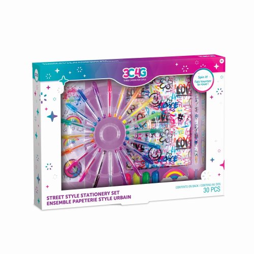 Velká otočná sada kancelářských potřeb obsahuje blok, 20 mini gelových per, 2 gumy, 2 barevné tužky, 4 zvýrazňovače, 4 vinylové samolepky.