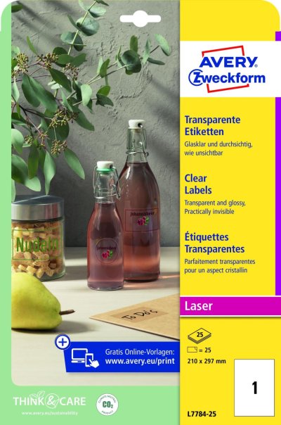 • Pro jedinečné a luxusní označení Vašich produktů se skvěle hodí krystalicky čiré etikety od Avery Zweckform
