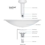 Obsah balení: zářič, PoE zdroj, napájecí kabel, manuál, montážní kit k přichycení na stožár, parabola, plastový držák zářiče