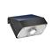 Klíčové vlastnosti: •Svítivost až 1000 lm •Výběr ze dvou barev světla (3000K a 4000K) s vysokou barevnou přesností (Ra>70) •LED osvětlení pomocí 20 diod typu 2835 •PIR senzor s detekčním úhlem 120° a dosahem až 5 metrů •Technologie ALS2.1 a TCS1.0 pro stabilní osvětlení i při zhoršených podmínkách •3 režimy osvětlení, snadné přepínání pomocí tlačítka •Výdrž až 3 dny při nevhodných podmínkách •Napájení pomocí solárního panelu typu Epoxy polycrystalline (5V/0,5W) •Plné nabití baterie za 20 hodin •Odolné provedení se stupněm krytí IP54