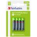 Dobíjecí prémiové baterie Verbatim - balení 4ks, pro digitální fotoaparáty, dálkové ovladače a další zařízení.
