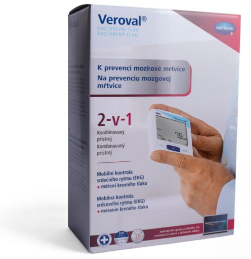 Nejvyspělejším tlakoměrem řady Veroval je revoluční přístroj 2-v-1, který v jednom těle kombinuje tlakoměr a monitor EKG Přináší vám tak kvalitu profesionálního měření až domů běžně byste si museli nechat "natočit" EKG u lékaře Tlakoměr s vysokou přesností měří srdeční rytmus, krevní tlak a tepovou frekvenci Největším přínosem je mobilní funkce EKG, se kterou můžete měřit elektrickou aktivitu srdečního svalu a včas odhalit riziko infarktu myokardu nebo mozkové mrtvice Na měření EKG využívá tlakoměr 2 kontakty na bočních stěnách, které buď držíte ukazovákem každé ruky, nebo je přiložíte na hrudník do oblasti srdce po dobu 30 sekund Udělejte pro pravidelnou kontrolu svého zdravotního stavu maximum s prémiovýmtlakoměrem Veroval s EKG 2-v-1 Tlakoměr ukládá měření pro 2 osoby a získáte ho s nadstandardní 5letou zárukou