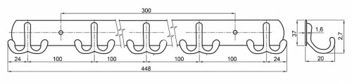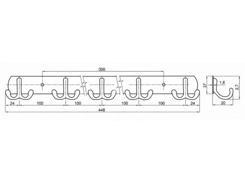 Věšák 5 x dvojháček CYRIL, Cr. balení obsahuje: - 1 x věšák - 2 x vrut - 2 x hmoždinka - 2 x krytka na vruty