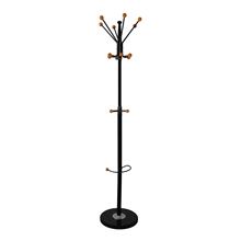 Stojací věšák v klasickém designu na svrchní oblečení Ideální do interiéru domu, čekárny nebo kanceláře Vyrobeno z odolné práškově lakované oceli Má 14 dřevěných háčků na zavěšení oblečení Vestavěný …