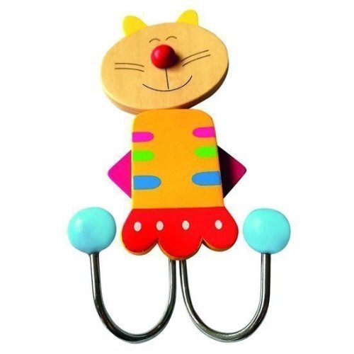 Veselá dekorace do každého dětského pokoje. Dřevěný věšák s motivem zvířátek - kočka.