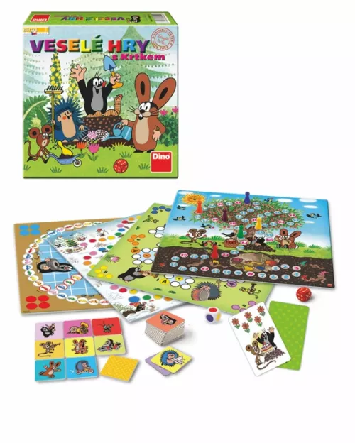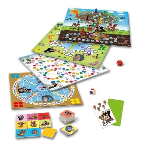 Jakmile si pohádkového krtečka jednou pustíte domů, už ho jen těžko dostanete pryč. Děti si ho zamilují okamžitě a vy mu nakonec podlehnete také. Pomůže vám v tom i balíček 5 stolních her s obrázky krtka a jeho kamarádů. Pocvičte s dětmi paměť nad pexesem, taktiku při karetní hře Score nebo si vyberte ze čtyř různých deskovek včetně krtčího člobrda. Kromě hravosti si děti promrskají počítání, znalost barev a nepochybně zapojí i svou bujnou fantazii. Obsah balení: hrací figurky v 6 barvách (4 ks od každé barvy)4 herní plány1 bodová kostka1 barevná kostka30 hracích karet48 pevných kartonových kartiček pexesa Hlavní vlastnosti: zábava pro celou rodinuvhodné pro děti o 3 letvyrobeno v ČR
