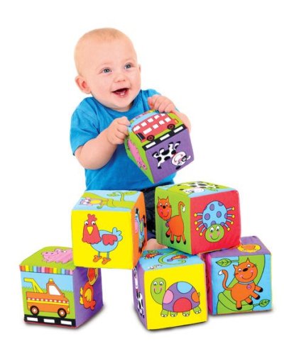 Zábava pro malé stavitele! Měkké kostky s barevnými motivy zvířátek a dopravních prostředků. Děti si mohou postavit komín s motivem zvířátek na dlouhém stonku rostliny, vytvořit dlouhou kolonu dopravních prostředků a nebo poskládat dvojičky identických obrázků. Na kostkách je 12 párů zvířátek. Balení obsahuje 6 kostek. Svrchní část každé kostky je vyrobena z textilu, vnitřek kostky pak tvoří měkká pěna. Rozměr jedné kostky: cca 10 x 10 x 10 cm. Kostky jsou uloženy do plastového obalu, do kterého je můžete po ukončení hry opět uložit. Hračka podporuje koordinaci oko-ruka, jemnou motoriku a rozvoj dětské představivosti. Vhodné pro děti od 6 měsíců.