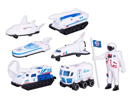 Vesmírná vozidla 6-8,5 cm kov volný chod 6 ks s astronautem 7,5 cm