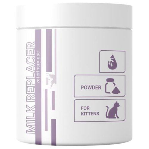 Milk Replacer je kompletní náhrada mléka speciálně přizpůsobená potřebám koťat. Nahrazuje přirozenou potravu od matky. Je velmi dobře snášena mladými organismy a může se podávat od prvních dnů života. Obsahuje základní živiny, zdravé bílkoviny, vitamíny a minerály pro podporu růstu koček. Je obohacená o taurin (esenciální aminokyselinu) potřebný pro správné fungování nervového systému a orgánů zraku. Složení: mléčné výrobky, palmový tuk, fosforečnan vápenatý, inulin z čekanky, uhličitan hořečnatý. Doplňkové látky na 1 kg: vitamín A (retinol) 25 000 MJ, vitamín D3 2 000 MJ, vitamín E (alfa tokoferol) 150 mg, vápník 5,38 g, železo 50 mg, fosfor 4,77 g, hořčík 500 mg, taurin 3 g, inulin 1 g. Krmný návod: Prášek rozpusťte v převařené teplé vodě v poměru 1 : 2 (1 odměrka prášku na 2 odměrky vody). 1 odměrka obsahuje 2 g přípravku. Krmte mlékem při tělesné teplotě cca 37 °C. Připravené mléko lze uchovávat v chladničce až 6 hodin. Skladování: Po každém použití obal pevně uzavřete. Skladujte na suchém místě. Spotřebujte do 2 měsíců od otevření. Upozornění: Určeno pouze pro zvířata!