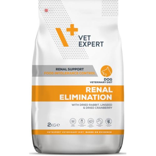 VetExpert VD 4T Renal Dog suché je kompletní dietní krmivo pro dospělé psy určené k podpoře funkce ledvin při chronické renální nedostatečnosti a ke snížení nesnášenlivosti složek a živin. Obsahuje monoprotein z králíka, snížený obsah fosforu a sodíku, vysoký obsah omega mastných kyselin a přírodní antioxidanty jako jsou brusinky. Hlavní benefity: