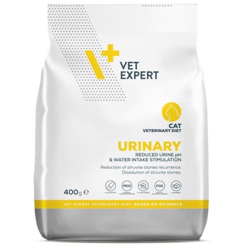 Veterinární diety svému mazlíčkovi nepodávejte bez doporučení veterináře! S veterinářem byste měli také nejméně jednou za 6 měsíců konzultovat, zda v užívání krmiva pokračovat. Kompletní veterinární krmivo Urinary Cat podporuje rozpouštění struvitových krystalů a kamenů a zabraňuje jejich opětovné tvorbě u dospělých koček. Granule obsahují brusinku, která snižuje schopnost bakterií přilnout k membráně močového měchýře. Zvýšený obsah sodíku stimuluje kočky ke zvýšenému příjmu vody, který zvyšuje objem moči a tím chrání před vysrážením struvitových krystalů a kamenů v moči. DL-methionin snižuje pH moči, což způsobuje rozpouštění struvitových krystalů a kamenů a chrání před jejich další tvorbou. Zvýšený obsah glukosaminu podporuje správnou funkci stěny močového měchýře, čímž omezuje schopnost bakterií a jejich toxinů pronikat do těla. Indikace: