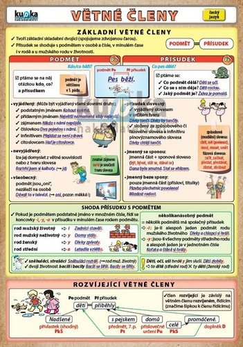 Přehledně zpracovaná a bohatě ilustrovaná pomůcka pro hravé zvládnutí tématu základní a rozvíjející větné členy v češtině.