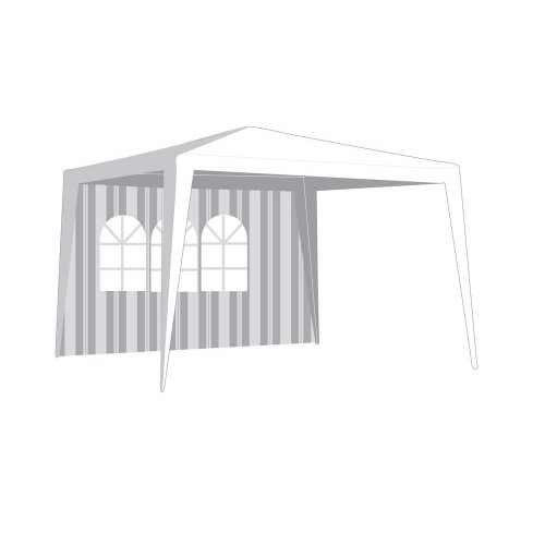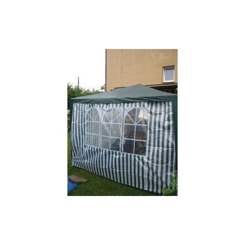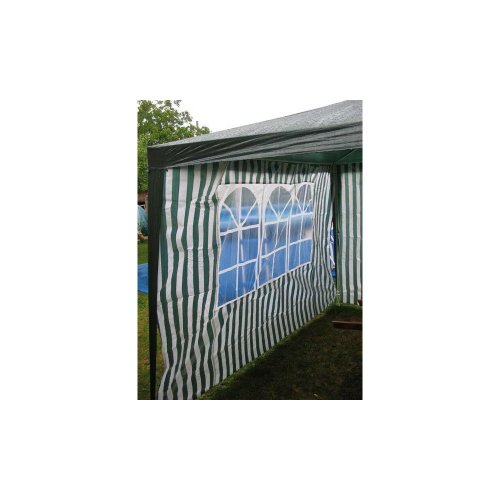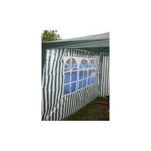 Bočnice stanu s oknem - bílo zelené pruhy. Materiál - rozměr: PE 100G, 2,95 x 1,9 m. Bočnice jsou vhodné k altán párty stanům 3 x 3 m.