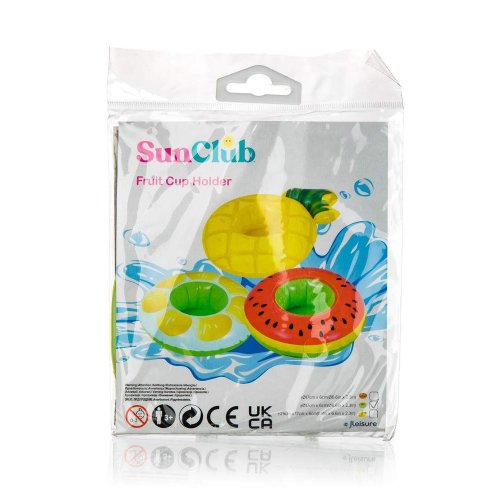 Držák na nápoje nafukovací je praktická pomůcka pro relaxaci ve vodě. Dekor ananas, meloun a citron. Průměr 17 cm, výška 6 cm.