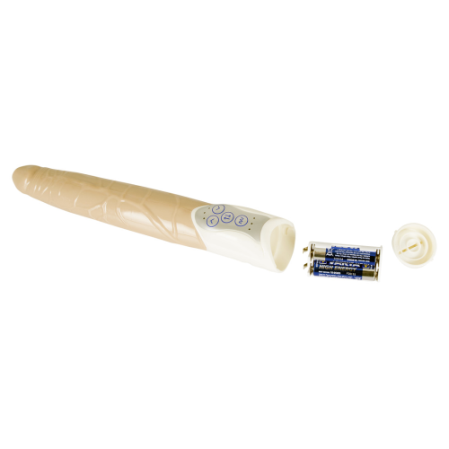 Rozměry a vlastnosti Barva: přírodní Celková délka: 27 cm Průměr: 4 cm Materiál: TPE Pohon: 4x AA baterie