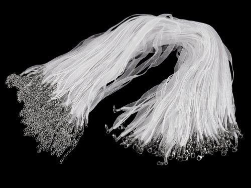 Hotový závěs z organzové stužky a tří voskovaných šňůrek je velice oblíbený. Stačí na něj zavěsit koupený nebo vlastnoručně zhotovený přívěsek. Zapíná se na klasickou karabinku a prodlužovací řetízek z nerezové oceli. Upozorňujeme zákazníky, že typy koncovek se mohou lišit, mohou být kulaté nebo ploché. Náš tip: doporučujeme vám nabídku samostatných přívěsků nebo si projděte nabídku bižuterních komponentů, například kovové přívěsky - ostatní.