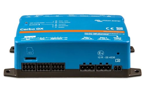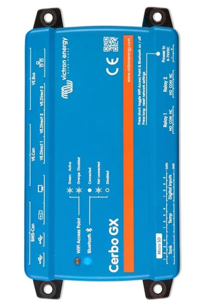 Rozhraní: Wi-Fi, Bluetooth, 1× RJ-45, 3× VE.Direct, 1× HDMI, 3× USB, 2× VE.Bus, 2× VE.Can, 2× BMS-Can, 12× I/O port, 2× relé, 1× microSD slot