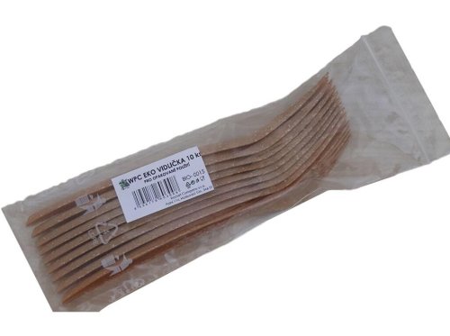 Ekologické kompozitní příbory vyrobené z WPC materiálu (dřevo/plast) jsou vhodné k jednorázovému i opakovatenému použití. WPC materiál je velmi odolný vůči vysokým teplotám (do 100°C). Příbory lze opakovaně umývat v myčkách. Inovativní velmi odolná a pevná vidlička je vyrobená z WPC materiálu, který kombinuje nejlepší vlastnosti dřeva a plastových polymerů. Vidlička je opakovaně použitelná, 100% recyklovatelná, odolná vysokým teplotám, vodě i mastnotě.