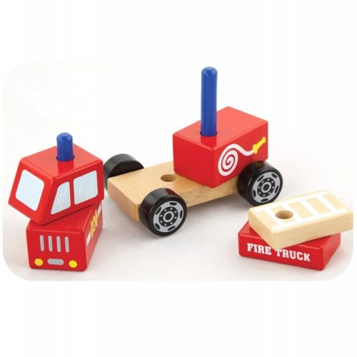 Poskládej si vlastní hasičské auto Dřevěná hračka je vhodným dárkem pro všechny malé motoristy. Slož si autíčko a staň se hasičem. Vyjeď k požáru a pomoz ho uhasit. Rychle! Oheň se šíří a je potřeba dorazit na místo co nejrychleji. Výrobek má mnoho využití - jako stavebnice, skládanka nebo klasické autíčko. Hračka rozvíjí motoriku a fantazii dítěte. Délka autíčka je cca 12 cm. Vhodné pro děti od 18 měsíců.