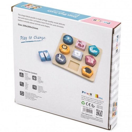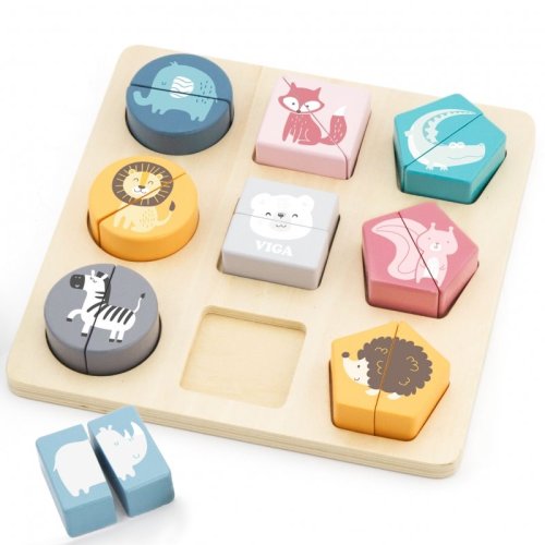 Dřevěná vkládačka Zvířata - Viga : - učí, jak řešit problémy - podporuje kreativní myšlení - podporuje a vyvíjí jemnou motoriku - rozvíjí představivost - podporuje smyslový vývoj dítěte Pomocí této vkládačky se děti mohou učit poznávat jednotlivé zvířátka. Sada obsahuje 9 dílků s obrázkem zvířat a dřevěnou podložkou pro jejich pokládku.Dílky jsou vyrobeny z vysoce kvalitního dřeva, díky čemuž jsou odolné vůči poškození. Hračka je plně ekologická a bezpečná. Vhodné pro děti od 18 měsíců . Viga je značka založená v roce 2003, ale již existuje ve více než 60 zemích po celém světě. Jejich inovativní nápady byly uznány min. v Evropě, USA, vzdálené Austrálii a Japonsku. Zakladatelé společnosti upozornili na výsledky výzkumu naznačující vztah mezi hrou a učením v prvních letech vývoje dítěte. Pro pomoc rodičům a vzdělávacím institucím při výchově dětí a jejich záchraně z virtuálního světa, který může do značné míry narušit realitu, nabízí výrobce inovativní řadu přírodních materiálů získaných během ekologických výrobních procesů. Bezpečnost a kvalita dřevěných výrobků je pro Vigu prioritou.