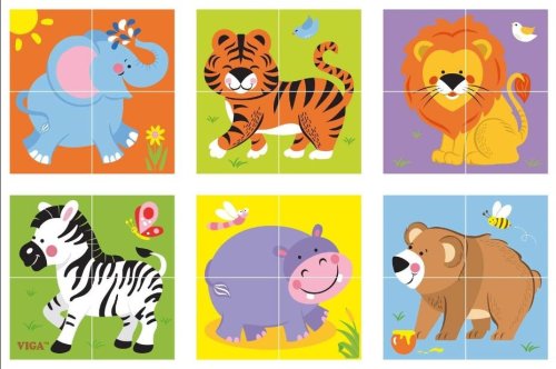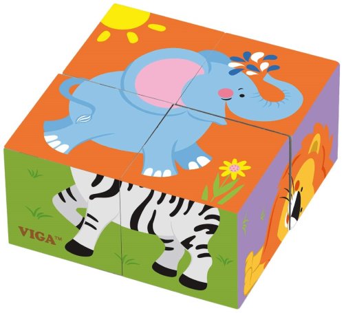 Dřevěné obrázkové kostky (kubusy) s obrázky zvířátek ze zoo. Prostřednictvím čtyř dřevěných kostek děti poskládají šest různých obrázků. Při skládání procvičí představivost i jemnou motoriku. Určeno pro děti od 24 měsíců.