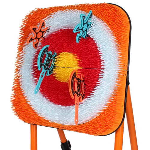 Připravte se na pořádnou dávku zábavy a zdravého soupeření s hrou Merco Viking Axe! Tento plastový terč se skládací konstrukcí je ideální pro vytvoření napínavé soutěže o největší přesnost hodu doma, na zahradě i na venkovních akcích. Součástí balení je osm plastových sekyrek a osm vrhacích hvězdic, díky nimž si hru může užít více hráčů najednou. Složení je jednoduché a rychlé. Plastové sekyrky i hvězdice jsou navrženy tak, aby dobře přilnuly k terči. Hra podporuje koordinaci, soustředění a přesnost. - materiál: plast - součást balení: skládací konstrukce s terčem, 8 sekyrek, 8 hvězdic - celkové rozměry po složení:148 x 68 x 75 cm (výška x šířka x hloubka) - rozměry terče: 60 x 60 x 6 cm - rozměry sekery: 23,5 x 15 x 1 cm - hmotnost sekery: cca 105 g - rozměry hvězdice: 16 x 1 cm - hmotnost hvězdice: cca 70 g - jednoduchá montáž - rozměry balení: 64 x 34 x 30 cm - hmotnost balení: cca 11,5 kg - Není vhodné pro děti mladší 6ti let, používejte vždy pod dohledem dospělé a zodpovědné osoby!