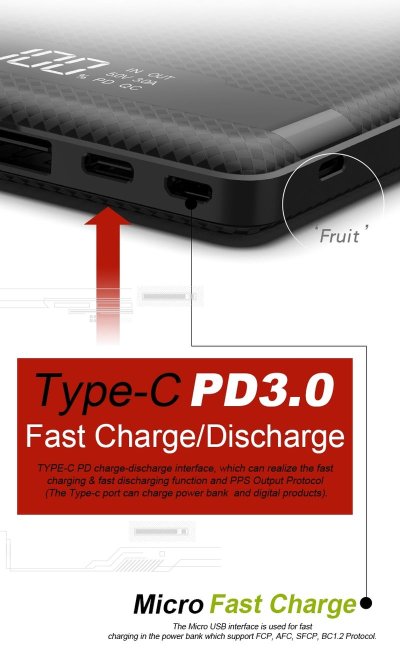 Podpora rychlonabíjení PD 3.0 a QC 4.0+ Powerbanka Viking PN-962PD 20000?mAh podporuje moderní technologie rychlého nabíjení PD 3.0 (Power Delivery) a QC 4.0+ (Quick Charge), díky kterým nabijete kompatibilní zařízení mnohem rychleji než běžnou nabíječkou – například mobil až na 50?% kapacity za krátkou dobu. Funguje jak s Androidem, tak s Apple zařízeními, pokud podporují rychlé nabíjení.