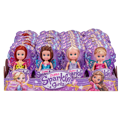 12 cm velká víla Sparkle Girlz má nádherná křídla a překrásné šatičky. Panenka je uložená v obalu, který připomíná kornoutek.