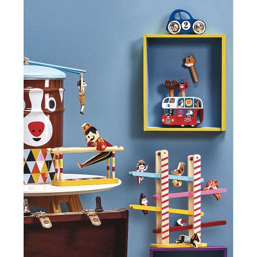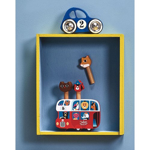 Modré autíčko vyrobené z lakovaného dřeva s kovovými pogumovanými koly. Autíčko je speciální v tom, že zatáčí doleva a doprava díky speciálnímu řešení nápravy. Vyrobeno ve Francii. Hlavní vlastnosti: vyrobeno ve Francii