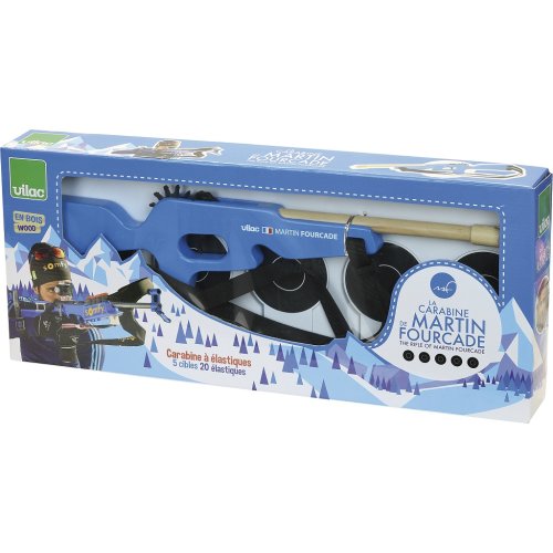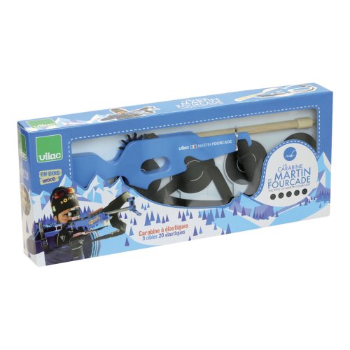 Máte doma malé sportovní nadšence, kteří se nezaleknou ani zimy? Tato hračka je přesně pro ně! Děti se při svých hrách většinou inspirují pohádkami, knížkami nebo televizními programy. Hrají u vás doma v zimním období hlavně sportovní programy? Pak je možné, že máte doma malé biatlonové nadšence. Češi fandí kromě hokeje a lyžování hlavně biatlonu. Představíme vám dnes dřevěnou hračku, která potěší mladé sportovní nadšence. Biatlonová malorážka francouzského sportovce Martina Fourcada. Fourcade je pětinásobný olympijský vítěz a držitel jedenácti zlatých medailí z MS. Pokud sledujete biatlon pravidelně jistě víte, jak je Martin pro svou disciplínu nadšený. Miluje nejen svůj sport, ale i své fanoušky a podporovatele. Je tedy přirozené, že chtěl něco udělat i pro ně – pro vás. Chtěl, aby i ti nejmenší měli možnost naučit se něco o biatlonu a hrát si na sportovce soutěžícího na mistrovství světa či olympiádě. Martin Fourcade se narodil a vyrostl ve Francii, možná i proto se rozhodl oslovit francouzskou firmu Vilac, která se zabývá návrhem a výrobou hraček. V zasněženém pohoří Jura spolu vymysleli projekt, který později nadchnul mnoho dětí a rodičů. Vyrobili Martinovu biatlonovou malorážku. Jako všechny hračky firmy Vilac je i tato malorážka vyrobena s ohledem na životní prostředí. Hračka je vyrobena ze dřeva a má nastavitelné textilní popruhy. Pažba malorážky je modrá, pod hlavní je umístěna vlajka Francie a jména autorů projektu – Martin Fourcade, Vilac. V balení najdete pět sklopných terčů a dvacet gumiček. Nastavte popruhy tak, aby vyhovovaly vašemu synovi, dceři nebo vám samotným. Postavte terče na požadovanou vzdálenost a dejte je do správné polohy. Ukažte dětem, jak správně a bezpečně gumičku natáhnout na dřevěnou malorážku. Teď už stačí jen zamířit a stisknout spoušť! Schválně, na kolik pokusů trefíte všech pět terčů? Hlavní vlastnosti: nastavitelné textilní popruhy v balení pět sklopných terčů a dvacet gumiček