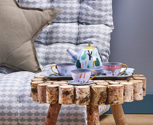 Kovový set nádobí s krásnou zvířecí ilustrací, s podtácem. Tento set je speciální v tom, že při servírování hraje hudbu. V balení najdete 14 ks vybavení: velký tác pro lehký přesun nádobí, 4 hrnečky s podtácky, 4 dezertní talířky a konvičku, která při náklonu začne hrát pěknou melodii. Velikost tak akorát pro dětské ruce. Ilustrováno Michelle Carlslund. Vyrobeno ve Francii. Hlavní vlastnosti: kovová sada nádobí uvnitř konvice na čas je ukryt natahovací hudební strojekdesign Michelle Carlslundobsahuje 14 ks Cestujte s námi v naivním a elegantním světě dánské ilustrátorky Michelle Carlslund, světě jemných barev, který je plný roztomilých medvědů a přátelských ptáčků. V roce 2010, když Michelle ještě studovala grafický design, vytiskla doma své ilustrace a zkusila je prodat na designovém trhu, kde se setkaly s velkým úspěchem! Několik obchůdků chtělo začít prodávat její výtvory, a tak ji napadlo, že by bylo fajn začít podnikat. Michelle se rychle stala uznávanou nezávislou ilustrátorkou. Dnes lze její ekologická grafická díla zakoupit po celém světě v designových buticích, papírnictvích a dětských obchodech. Michelle se inspiruje vším kolem ní. Její výtvory jsou něžné a poetické, stylizovaný a dětinský styl, který se perfektně prolíná s hračkami firmy Vilac. „Jsem hranolky milující, časová optimistka a tvůrkyně ekologických plakátů a ilustrátorka na volné noze se sídlem v dánské Kodani,“ to by řekla ilustrátorka Michelle Carlslundová, kdyby se měla popsat jednou větou.
