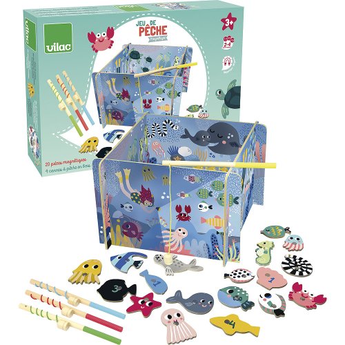 Zábavná hra, kterou milují všechny děti, v provedení pro čtyři hráče, s ilustracemi umělkyně Michelle Carlslund! Magnetické rybaření s 20 dřevěnými herními dílky, s bohatě dekorovanou kartonovou herní plochou. Hlavní vlastnosti: 4 udice, 20 herních dílkůilustrace Michelle Carlslundvyrobeno ekologicky, šetrně k životnímu prostředí Cestujte s námi v naivním a elegantním světě dánské ilustrátorky Michelle Carlslund, světě jemných barev, který je plný roztomilých medvědů a přátelských ptáčků. V roce 2010, když Michelle ještě studovala grafický design, vytiskla doma své ilustrace a zkusila je prodat na designovém trhu, kde se setkaly s velkým úspěchem! Několik obchůdků chtělo začít prodávat její výtvory, a tak ji napadlo, že by bylo fajn začít podnikat. Michelle se rychle stala uznávanou nezávislou ilustrátorkou. Dnes lze její ekologická grafická díla zakoupit po celém světě v designových buticích, papírnictvích a dětských obchodech. Michelle se inspiruje vším kolem ní. Její výtvory jsou něžné a poetické, stylizovaný a dětinský styl, který se perfektně prolíná s hračkami firmy Vilac. „Jsem hranolky milující, časová optimistka a tvůrkyně ekologických plakátů a ilustrátorka na volné noze se sídlem v dánské Kodani,“ to by řekla ilustrátorka Michelle Carlslundová, kdyby se měla popsat jednou větou.