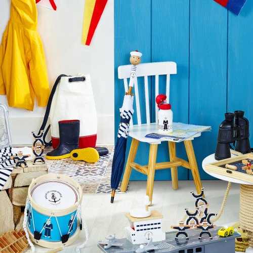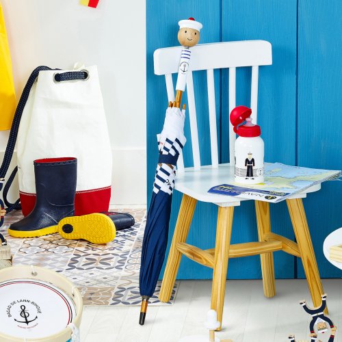 Nenechejte se zaskočit nepřízní počasí a vyrazte ven s unikátním deštníkem! Díky jedinečné barevnosti, námořnickým motivům a originálně zpracované rukojeti s pružně usazenou hlavičkou budete za vzor elegance. Deštník nabízí odolnou a výjimečně lehkou konstrukci kombinující karbon a masivní dřevo. Mechanismus zavírání je opatřen systémem bránícím přiskřípnutí dětských prstíků. Vyrobeno ve Francii. Hlavní vlastnosti: lehká karbonová konstrukceoriginální rukojeť z masivního dřevabezpečný systém zavíránívyrobeno ve Francii Šťastnou plavbu! To je přání námořníkům, kteří vyráží na moře. Toto přeje i Vilac, se svou kolekcí, kterou vyvinuli ve spolupráci s francouzským námořnictvem. Vůni moře vítr dofoukal až do pohoří Jura, výsledek jistě potěší malé námořníky a námořnice, také dospělé, kteří pečují o své vnitřní dítě!